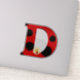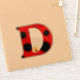 Letra Superaguda D em um padrão de pontos de Ladybug divertido com uma flor amarela doce e um pequeno amigo de ladybug. Perfeito para personalizar uma garrafa de água ou um computador ou dar como um favor de festa de aniversário.