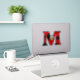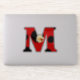 Letra Superaguda M em um padrão de pontos de Ladybug divertido com uma flor amarela doce e um pequeno amigo de ladybug. Perfeito para personalizar uma garrafa de água ou um computador ou dar como um favor de festa de aniversário.