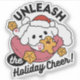 Espalhe alegria festiva com este lindo desenho de cachorro de Natal! Apresentando um filhote branco em um Papai Noel que encolhia dentro a meia vermelha de feriado, segurando um biscoito de gengibre e rodeado de estrelas — esta trabalho de arte traz vibrações confortáveis e alegres para a temporada. A citação "Libere o Feriado Cheer!" faz dele um presente perfeito para pata para amantes de cachorros, fãs de férias, ou qualquer pessoa que ame arte de inverno caprichosa. Ideal para t-shirts, autocolantes, cartões, canecas e muito mais! #HolidayDog #WinterVibes #DogLovers #WinterArt