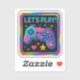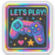 Premium holographic sticker featuring bold "LEVEL UP" text with retro 8-bit gaming controller design. Perfect for laptops, gaming setups, and tech accessories. High-quality prismatic effect creates stunning rainbow reflections.
