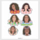Belo desenho animado Black African Women face and Flowers Art sticker sheet