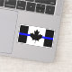 "Linha azul fina" é um termo que tipicamente se refere ao conceito de polícia como a linha que impede a sociedade de cair no caos violento. O "azul" em "linha azul fina" refere-se à cor azul dos uniformes de muitos departamentos de polícia. Atribuição de imagem: Por И д о л о г и с т е - Derivado de: Flag do Canadá, CC BY-SA 4.0, https://commons.wikimedia.org/w/index.php?curid=90881277.
