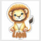 Este adesivo gigante de leão é uma adição entusiasmante e majestosa a qualquer quarto de berçário ou de criança, acrescentando um toque de aventura e charme ao espaço. A design apresenta um adorável leão bebê sentado em uma posição vertical com uma expressão alegre e amigável. Seus grandes olhos redondos brilham com curiosidade e calor, enquadrado por um sorriso suave que irradia confiança e a doçura. O pelo amarelo-ouro do leão é macio e belamente texturizado, com um mane liso que molda sua face em tons laranja quentes e ricos. O homem é detalhado com traços finos que lhe dão uma qualidade semelhante à vida, mas caprichosa, perfeita para um espaço favorável à criança. As pequenas estacas cor-de-rosa do leão são visíveis à medida que se sentam confortavelmente, acrescentando uma camada extra de beleza, enquanto a cauda tufada se curva suavemente para o lado, completando a sua aparência carinhosa. A palavra "LION" aparece a negrito, em letras borbulhantes na parte inferior do design, escrita numa sombra castanho-quente com um contorno laranja que complementa as cores naturais do leão. A fonte divertida melhora a vibração do autocolante para crianças, fazer-a como um encantador complemento a qualquer decoração infantil. Uma borda branca limpa rodeia todo o adesivo, garantindo que ele se destaca claramente em qualquer fundo, seja aplicado em paredes, móveis ou outras superfícies. Este adesivo é ideal para criar um berçário de safari ou de matas, celebrando a beleza e a majestade da vida selvagem enquanto inspira um senso de aventura. É maravilhosamente semelhante a outros autocolantes de animais, como girafas, zebras e elefantes, para artesanato de um ambiente coeso e engajador para as crianças.