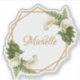 Este elegante desenho floral geométrico combina as tendências de 2019: geométrico e metálico (dourado). A moldura geométrica irregular dourada tem buquês de flores de copo-de-leite brancos com samambaia para cima e para baixo sobre dois hexágonos dourados que se sobrepõem. O nome é escrito em uma elegante caligrafia e tem uma cor amarela dourada, como a moldura dourada. O buquê de flores vintage com copo-de-leite branco é de um cartão-postal antigo de Bertha Maguire (1862-1910), agora em domínio público.