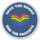 Este adesivo espalha uma forte mensagem anti-censura com sua frase "Salvar os Livros e Banir os Fascistas" ao lado de um corações coloridas do arco-íris em um fundo circular azul. A censura à literatura LGBTQIA+ e BIPOC nas escolas está errada. Os ataques em todo o país de uma minoria forte estão preocupados com os direitos dos estudantes e educadores da nossa nação, e especialmente devastadores para as crianças nessas comunidades. Mostre o seu apoio aos nossos estudantes e educadores e resista a estes fascistas! Design atualizado pelos Designs digitais CtrlZ 2025