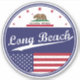 Long Beach California. Long Beach design com bandeira dos Estados Unidos e bandeira da Califórnia, Cali Vibes, California Dream. Vinheta de carro Long Beach, vinheta de bagagem Long Beach, vinheta de viagem Long Beach, vinheta de proteção Long Beach, vinheta Long Beach com forma arredondada.