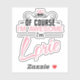 Lorie Claro que sou um nome incrível em sans rosa pálido e preto misturados e carateres cursivos com entalhes de rolagem e com uma coroa. O nome corresponde à fonte decorativa cor-de-rosa.