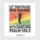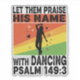 Deixem-nos elogiar o seu nome através da dança - Salmo 149:3. Design em tons vibrantes com uma silhueta de dançarina no centro.