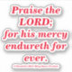Obrigado por comprar esses adesivos "Louvado o Senhor" com texto vermelho clássico. Estes autocolantes são inspirados pela Versão do Rei James, de 2 Crônicas 20:21, "Louvado o LORD; pelo seu compaixão final para sempre."