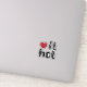 A vinyl sticker featuring a simple, playful design with images of a heart for saying you love things hot. A red heart is used to say "Love", with smaller hearts that assume the color of the chosen background cut out in the letters. The color of the red heart and the texts can be individually customized.
