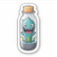 Este adesivo apresenta um monstro bonito e esquisito em um vidro. A criatura tem uma boca grande com dentes afiados e dois tentáculos. O boião está cheio de água e bolhas. A tampa do vidro é laranja e tem textura áspera. Este adesivo é perfeito para qualquer um que ama animais aquáticos, desenhos animados, ou algo divertido e original.