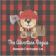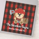 Lumberjack e wilderness, o filhote de vinilo, com um bonitinho urso de pelúcia num boné de tricô, camisa de flanela e suspensórios e fraldas de cinza com um pino de fralda. Ele segura um machado com um coração na frente de um toco de árvore. O Adventure Begins é um tema apropriado para a nova mãe ou pais esperarem um bebê. Trabalho de arte © Chrissy H. Studios, LLC. Todos os direitos reservados.