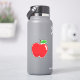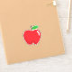 Vinheta com desenho animado de uma maçã vermelha com uma folha verde.