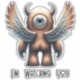 Monstro peludo branco de um olho com asas que tem um olho na parte de trás da cabeça para que possa ver tudo.