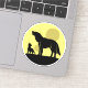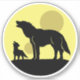 Uma mãe e um lobo bebê uivam até a lua de cheio.