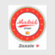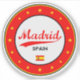 Crachá de Madrid com bandeira de Espanha, forma arredondada. Taco de Madrid. Vinheta de carro de Madrid, vinheta de viagem de Madrid. Emblema de Madrid España