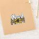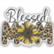 Um adesivo de laptop bonito com texto, "Mãe Abençoada" decorado com letras de guepardo/leopardo e um girassol rústico.