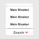 A Main Breaker sticker with three labels on one sticker. Good for electricians. Use scissors to cut the individual labels.