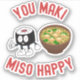 Espalhe as vibrações sushi com este adorável adesivo de trocadilho! Perfeito para laptop, garrafas d'água, ou planejadores, este design "Você é feliz por miso" é ideal para amantes de comidas e viciados em trocadilhos. Durável, brincalhão e muito fofo.