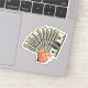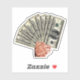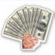 Adesivo mão segurando notas de cem dólares arte do dinheir