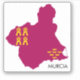 Mapa/ bandeira da Região Autônoma de Múrcia, na Espanha sudeste.