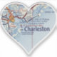 Vintage map sticker para Charleston Carolina do Sul em 1950, mostrando a Citadel e Ilha de Palms.