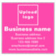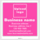 Um adesivo de vinil quadrado grande que você pode personalizar para colocar seu nome comercial e outras informações de sua empresa. Exiba-o como material de marketing para anunciar sua empresa ou promover seu nome de marca para clientes ou clientes. Você também pode usá-lo como material de embalagem para grandes caixas. Adesivo de vinil personalizável que pode ser utilizado para criar reconhecimento do nome da marca. As cores design são textos brancos em fundo cor-de-rosa. Para personalizar este adesivo, carregue o logotipo da sua empresa, digite seu nome, endereço, número de telefone, e-mail e site ou a página de mídia social da sua empresa. Verifique a aparência após carregar o logotipo e digitar textos. Se a aparência lhe agrada, você pode colocar seu pedido agora. Se precisar redimensionar e mover o logotipo e as mensagens para o ajustado neste adesivo ou no tamanho que você escolher, mude na ferramenta design. Você também pode alterar a cor do plano de fundo, a cor da fonte e o estilo da fonte na ferramenta design.