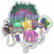 Adesivo de vinilo recortado com uma imagem festiva de uma morada verde, púrpura e dourada, máscaras de penas roxas, um chapéu sequestrado por fúcsia, miçangas verdes e roxas, balões roxos, verdes e dourados, e dois corações ametistas roxos. Balões de ouro e dois corações ametistas roxos. Veja o adesivo redondo correspondente, confetti, convite, envelope, bolsa de favor, caixa de favor, etiqueta de favor, sacos de presentes, etiqueta e papel de embalagem. Veja toda a coleção do Mardi Gras Sticker nos CONVITES | Seção Stickers & Labels