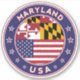 Design com bandeira de Maryland e bandeira dos Estados Unidos, forma arredondada. Cargueiro de Maryland, etiqueta de bagagem de Maryland, etiqueta de viagem de Maryland,