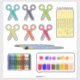 Material escolar para as aulas de arte, incluindo tesouras, lápis, lápis de aquarelas, pincéis de tinta e tintas de aquarelas! Que diversão para as pastas da escola e o armário da criança! Professores, esta é uma folha de autocolante divertida para a aula! Arte original de Cherie(c)2021