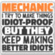 Mecânico Engraçado Diz "Mecânico Eu Tento Fazer Coisas Idiotas Provas Mas Eles Mantêm Fazer Melhor Idiotas". Agarra esta design Mecânica Engraçada como presentes engraçados para uma mãe, pai ou amigo espetacular.