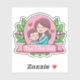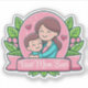 Adesivos adaptáveis, ideais para o Dia de as mães. Uma bela ilustração de uma mãe e seu filho dando um abraço carinhoso um ao outro. Ambos estão vestindo uma camisa azul e têm cabelo castanho. Ambos têm um sorriso amoroso e bochechas rosadas. Eles são colocados dentro a um círculo cor-de-rosa com faíscas e dois corações amorosos pontilhados ao redor. Abaixo deles está uma faixa cor-de-rosa com um roteiro elegante lendo 'Melhor Mãe Nunca', este é um modelo que pode ser usado como ele é ou substituir o texto original pelo seu próprio para personalizar. Ao redor do círculo e faixa estão folhas verdes e flores cor-de-rosa. Um desenho bonito ideal para sua mãe.