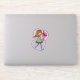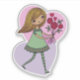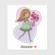 Arte miniatura fofa de uma menina caprichosa com cabelos amarelos longos e fluídos e usando um vestido verde e meias listradas. Ela está segurando um lindo buquê de rosas vermelhas em suas mãos estendidas. Originalmente feita como arte digital, um adesivo adorável de arte ideal para enviar a um amigo ou ente querido ou para você mesmo, se você gosta de coletar mini arte.