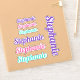 Decais de Vinil de Corte, cor-de-rosa, roxo e azul-turquesa para crianças e meninas, use-os para crianças personalizarem todos os tipos de itens, incluindo laptop, capacete de bicicleta, bicicleta, garrafa de água, tumbler, copo de bebida, caixa de viagem, bagagem ou qualquer coisa! Nome personalizado feminino: Vinil decala personalizado para você. Você tem um grande, três médio e seis pequenos decalques. Você escolhe o tamanho da folha.