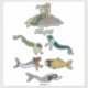 Esta ilustração apresenta uma série de pessoas de todo o mundo. Entre os seres ilustrados estão: uma sereia europeia norte loura, uma sereia masculina de pele vermelha do lirlandês, uma varanda dinamarquesa de pele azul, um bonito-de-coleira que veste o colar das tradições das pessoas de Sa'a das Ilhas Salomão, um ningyo japonês com face humana, e um caju de olhos vermelhos da África do Sul.