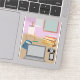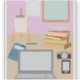 Uma arte vetorial de um cheio de mesa de itens como câmera, telefone celular, laptop, calculadora, suprimentos de arte, livros e calendário.