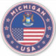 Design de Michigan com bandeira de Michigan e bandeira dos Estados Unidos, forma arredondada. O autocolante do Michigan, o autocolante de bagagem do Michigan, o autocolante de viagem do Michigan,