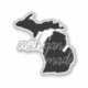 Michigan Fez Tipografia Com Silhueta Preta. O estado de Michigan numa silhueta negra com a tipografia cursiva "Michigan Made". Design do Michigander.