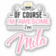 Claro que sou incrível, sou Mila, em sans mistos preto e rosa e letras cursivas com bordos brancos de rolagem e cortou uma coroa ouro.
