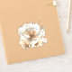 A gorgeous minimalist white and gold color wedding sticker with the name of the bride and groom, and wedding date.