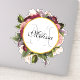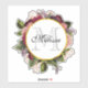 Um decal de vinilo com um círculo que tem uma falsa borda de folha de ouro, que é colocada sobre um bonito buquê floral de rosas, cravos e outras flores. Personalize com seu nome e dentro de monograma o círculo.