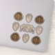 Dê um passo atrás no tempo com nossos marcadores de design do monograma cortado com musa real. Inspirada pela era icônica dos tempos medievais e dos reinos da fantasia. Nossa design de musa real é perfeita para aqueles que buscam uma estética medieval, regal, mas moderna. Todos os elementos são originalmente desenhados à mão por nós, até ao último pormenor. A folha adesiva contém quatro dos nossos selos de fax de monograma pintados à mão e quatro dos nossos emblemas monográficos da crista do escudo da família, desenhados à mão, com um dos nossos design de emblema de monograma desenhado à mão. Personalize com suas próprias iniciais de monograma para criar um aspecto personalizado verdadeiramente único. Todos os trabalho de arte são meticulosamente desenhados à mão por nós. Personalize o texto e a fonte de acordo com as suas preferências de design.