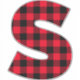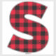Monograma da letra S em negrito com uma imagem de sobreposição personalizável. Padrão clássico de xadrez de búfalos vermelho e preto. A borda pode ser branca ou transparente. Verifique a descrição à esquerda. A letra S. Monograma S. Inicial Cria um adesivo decorativo para as recém-casadas na lua de mel.