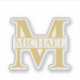 Monograma personalizado e Name Custom-Cut Sticker apresentam um monograma de ouro personalizado no estilo de letra serif clássico com caixa de nome no meio do monograma. Note que os detalhes da folha são simulados no trabalho de arte. Não será utilizada nenhuma folha de alumínio real no fazer deste produto.