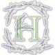Uma design romântica e elegante com letra monográfica moldada por eucalipto e lavanda pintada em aquarela.