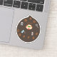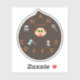 Este incrível adesivo em forma apresenta um desenho de um Pai que é um monstro de café. Seu rosto é dentro uma gota grande de café e ele tem uma língua assustadora e está ficando careca. Açúcar, leite, café e uma colher ao seu redor, tudo o que ele precisa para a sua bebida favorita. O texto marrom claro diz, "Pai ama café".