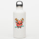 Uma criatura fofinha, ao estilo cartoon, com pelo laranja felpudo e orelhas proeminentes parece alegre com um nariz vermelho brilhante e um sorriso dentado. É adorado com chifres que têm luzes de Natal e ornamentos enrolados neles, alinhando com o texto festivo do "Monstro do Papai noel" abaixo dele.