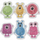 Aprecie seu monstro fofo com este pacote de 6 adesivos de monstros de desenho animado sorridentes.