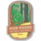 Monumento Nacional de Muir Woods Um design crachá de viagens vintage de árvores de madeira vermelha no Monumento Nacional de Muir Woods em Área de Recreação Nacional de Porta do Ouro, São Francisco, Califórnia, Estados Unidos.