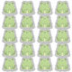 Muitos sapos verdes e bonitos com bochechas cor-de-rosa.